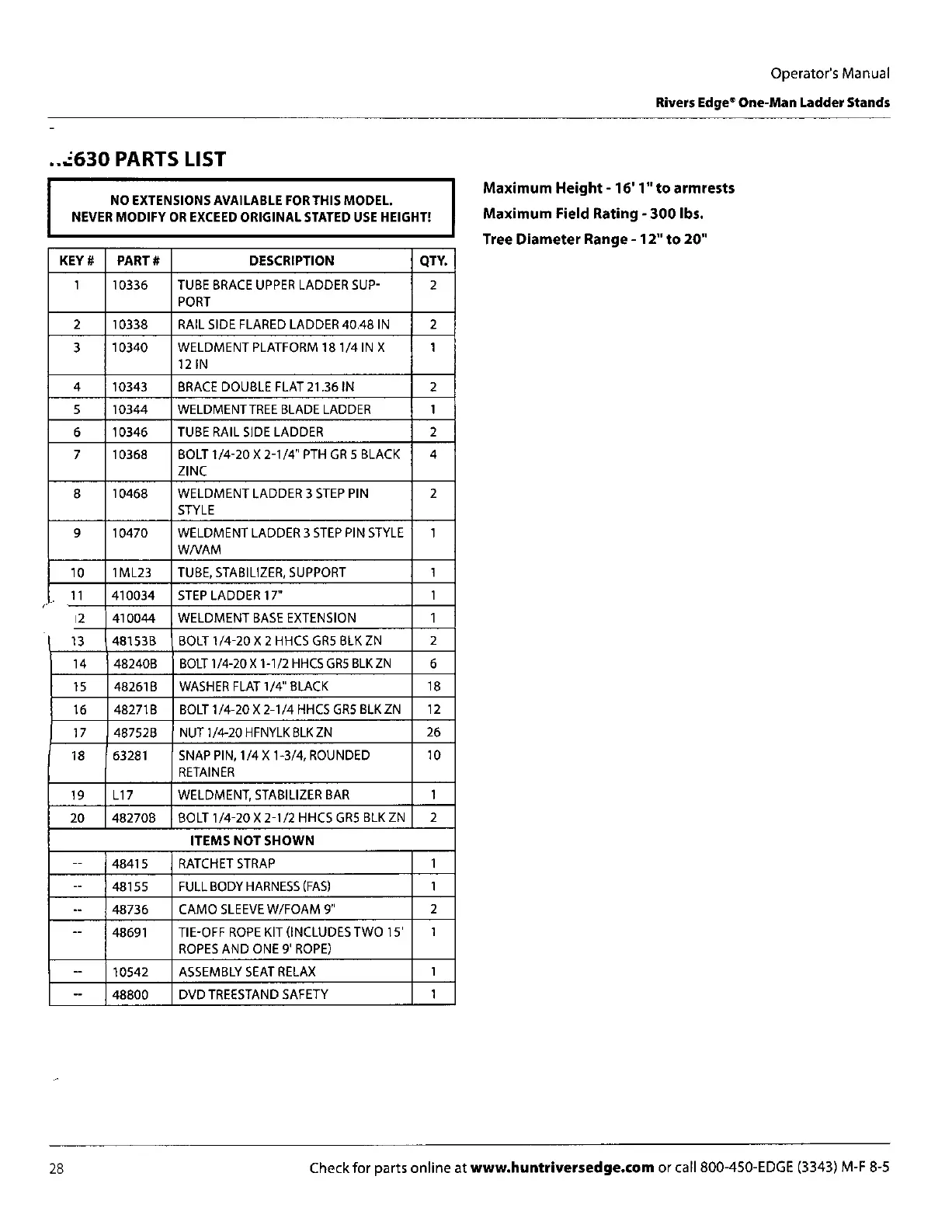 NEVER MODIFY OR EXCEED ORIGINAL STATED USE HEIGHT!