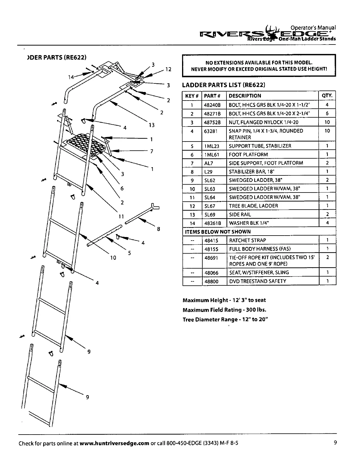 NEVER MODIFY OR EXCEED ORIGINAL STATED USE HEIGHT!