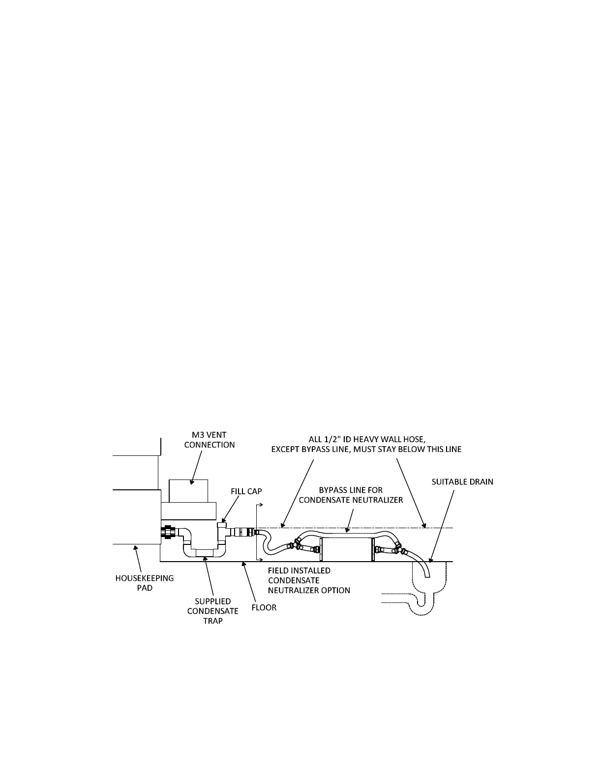condensate disposal through a suitable drain. Condensate is neutralized while slowly flowing through a container