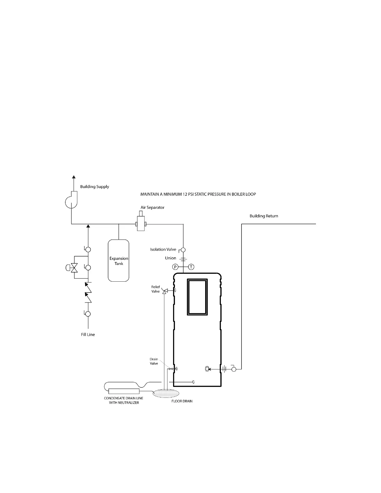5. Pipe the drain valve to a suitable open drain capable of receiving discharge temperatures up to 212ºF.