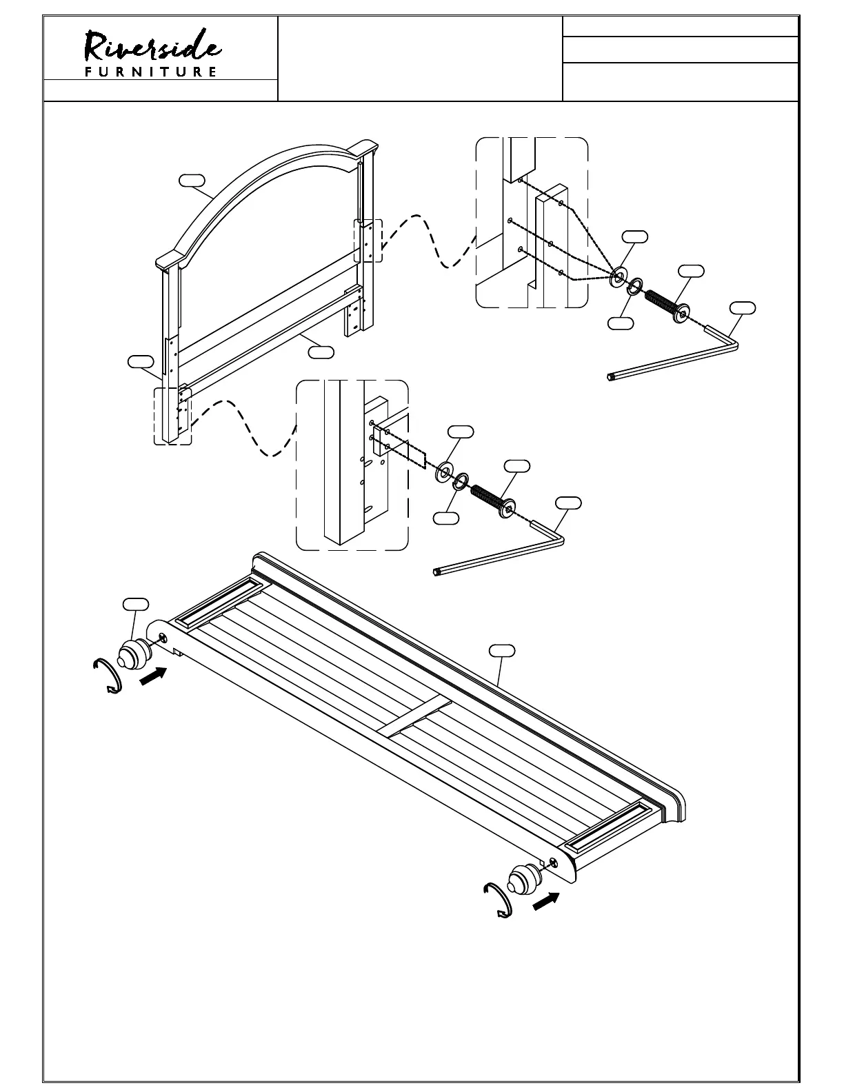 2. Attach the Left and Right Legs (H-B) to the back of the Headboard Panel using the Allen-Head Bolts (H-D), Spring
