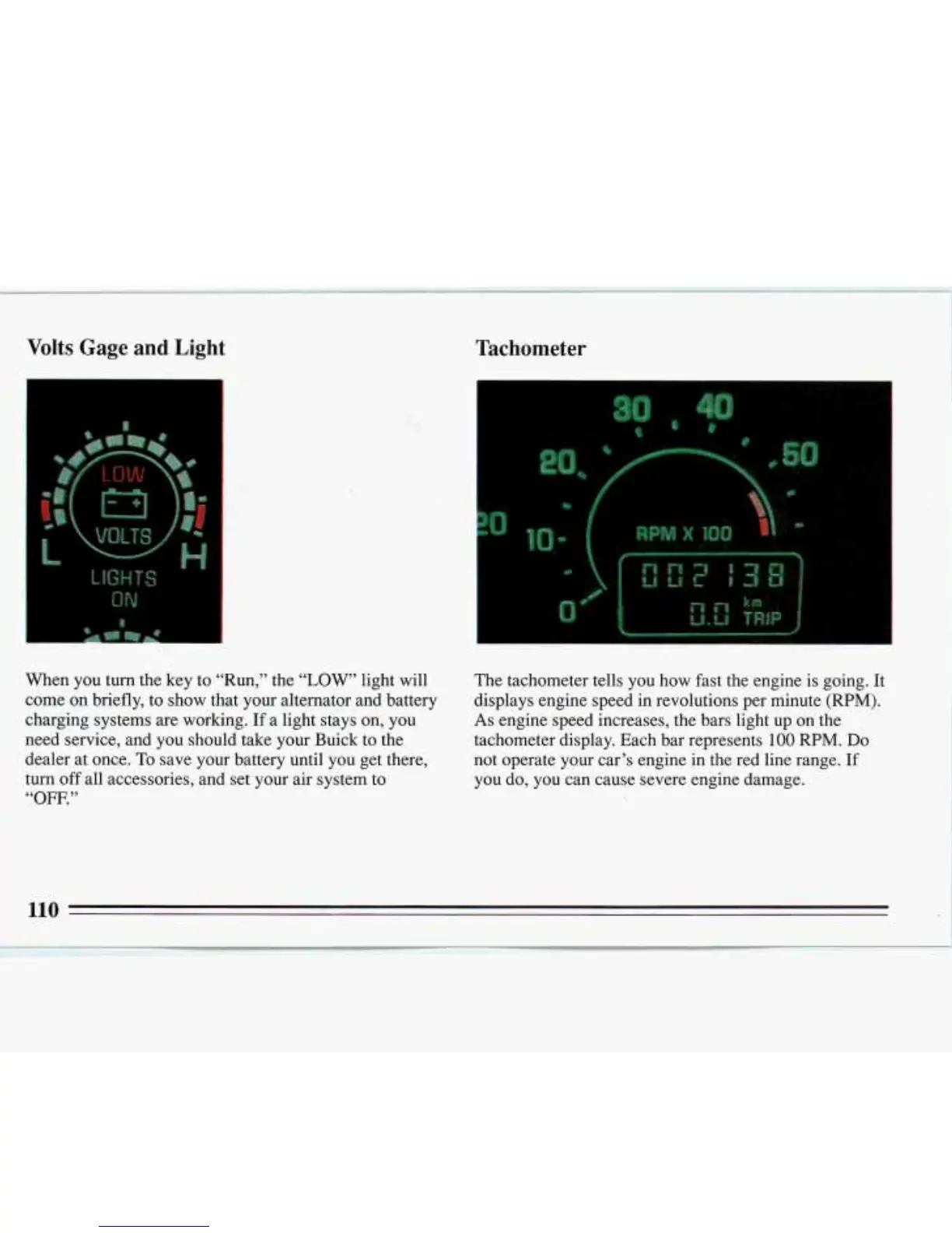 need service, and you should take your Buick to the tachometer display. Each bar represents
