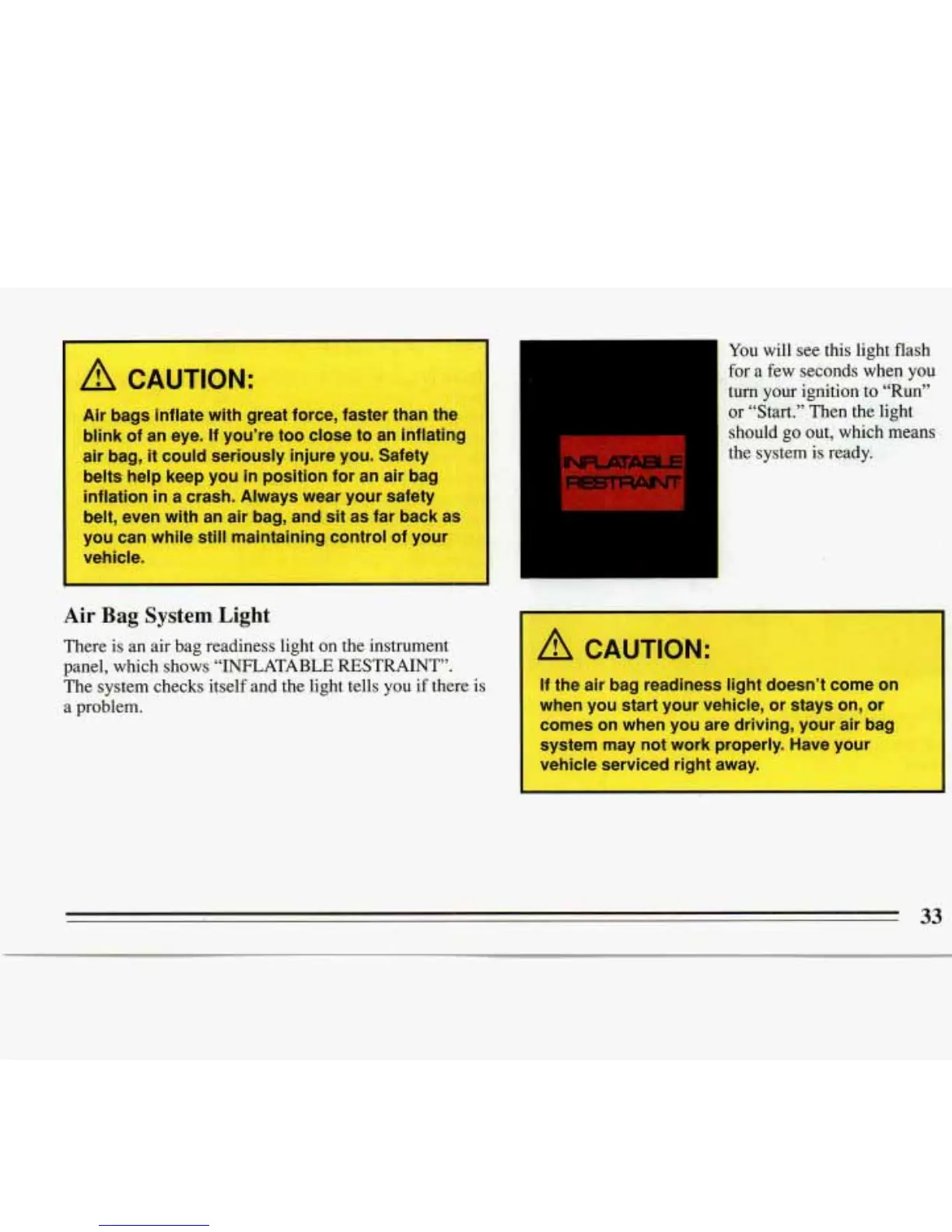 air bag, it could seriously injure you. Safety