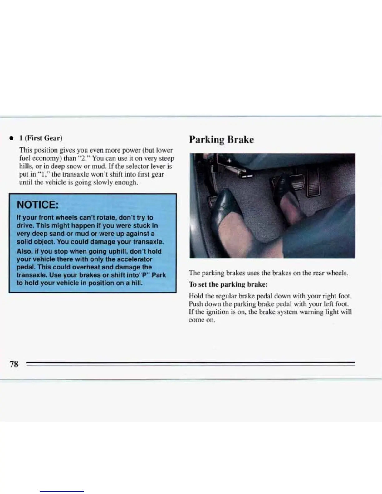 down the parking brake pedal with your left foot.