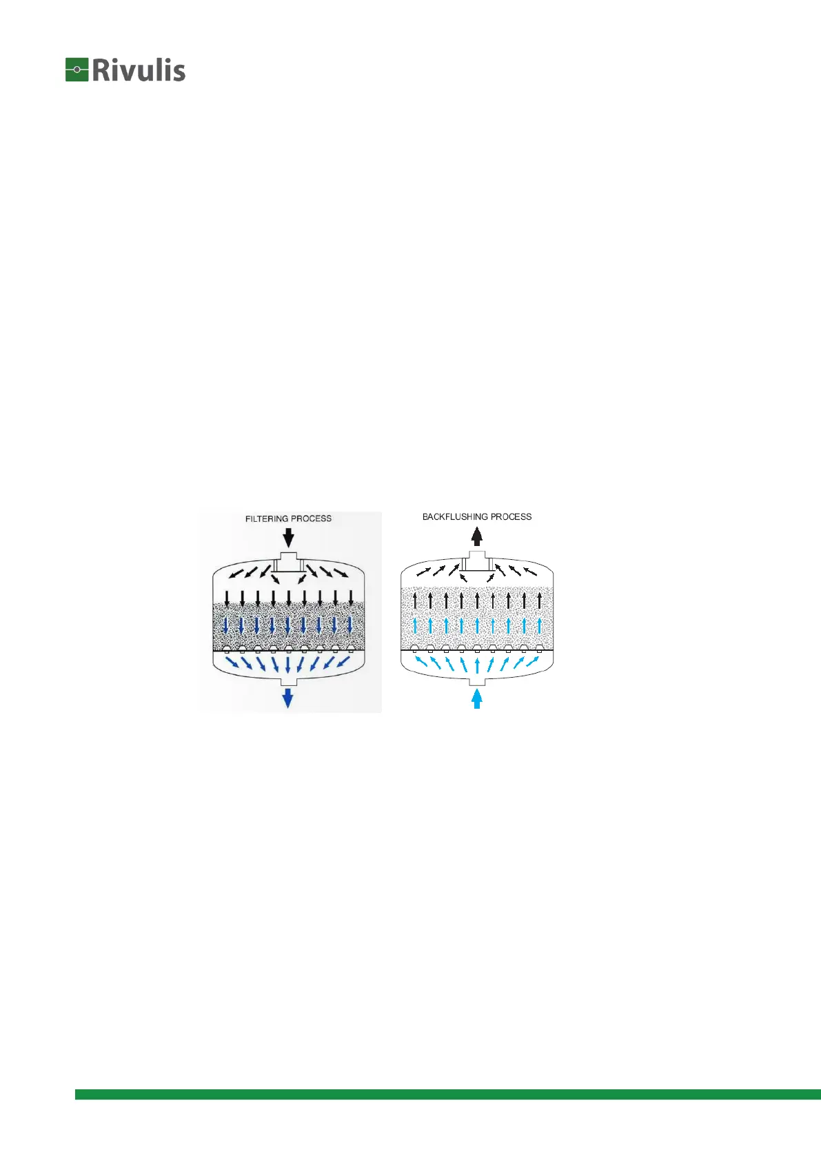 Image. 5. Flow direction of water through a media filter during filtration (left) and backwash