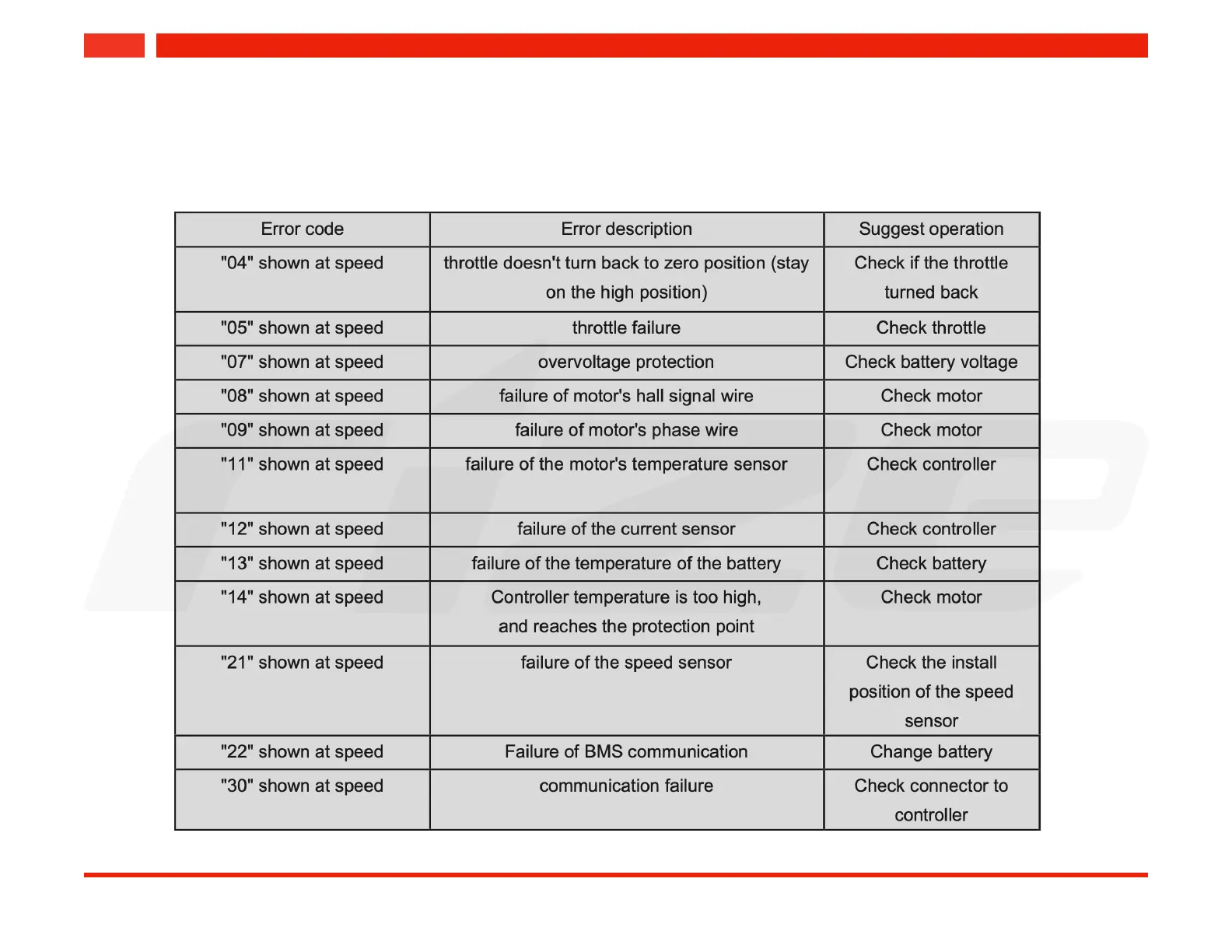 Whenever an error is detected, the LCD display shows an error code.