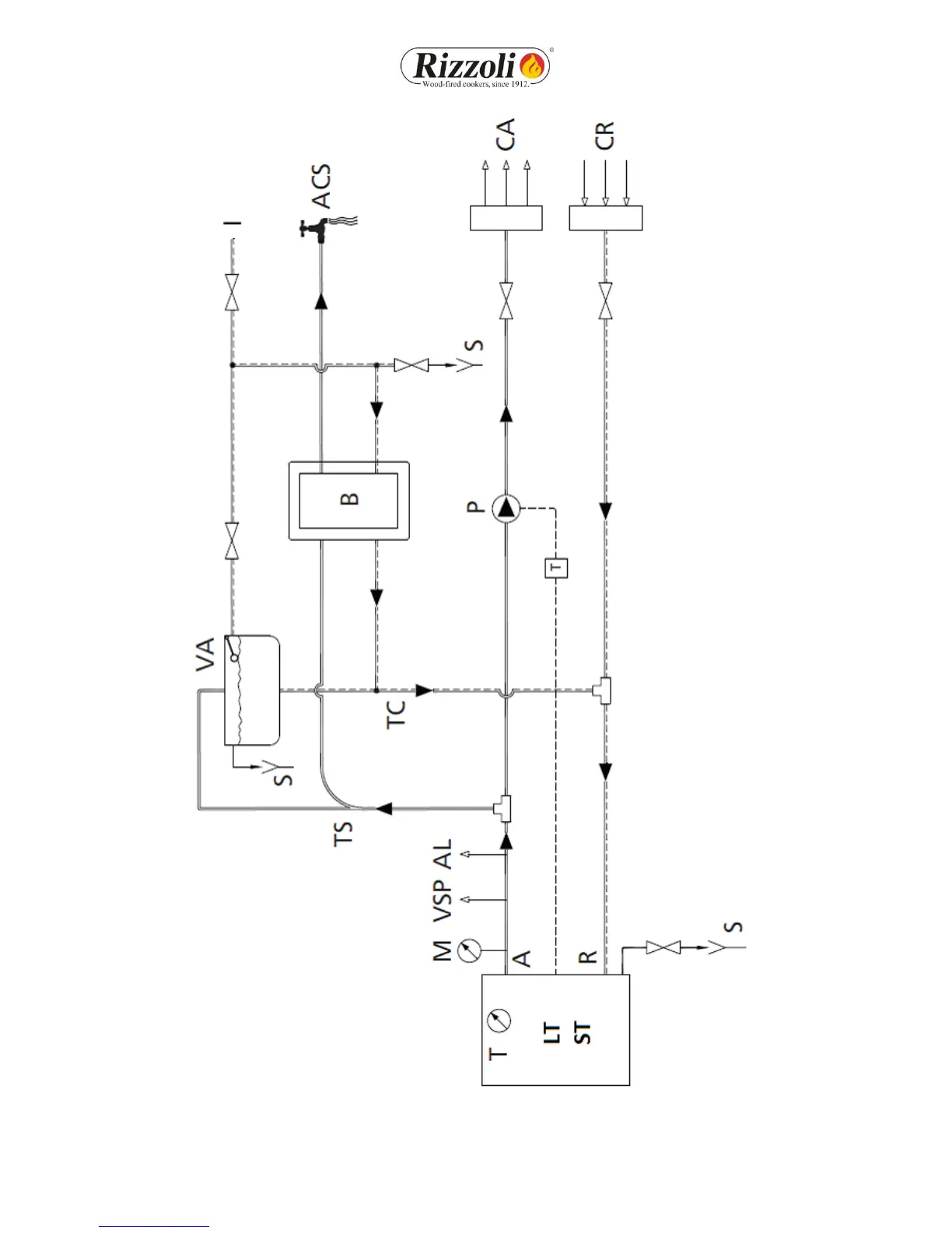 Picture 18 – Simplified schemes for the installing of a heating system with the thermal cooker LT 90 or ST 90 as heat generator.
