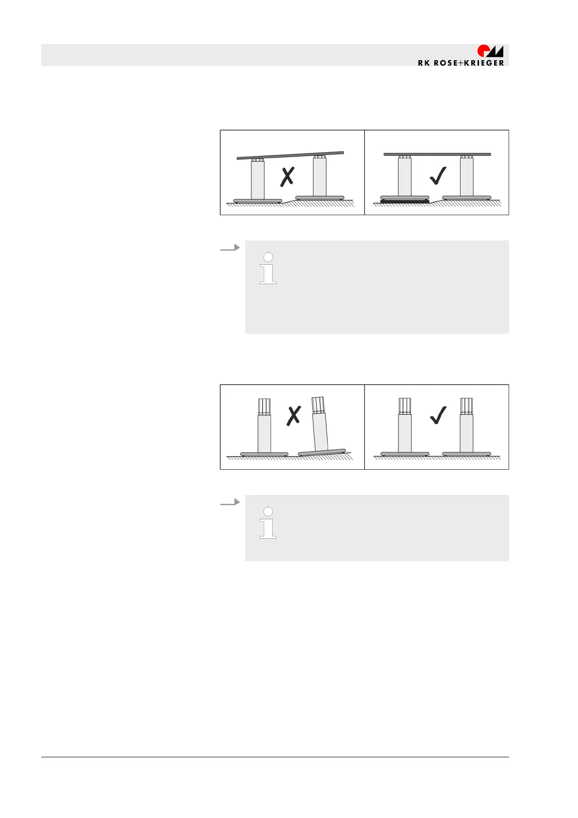 Darauf achten, dass die Hubsäulen parallel zueinander aus-