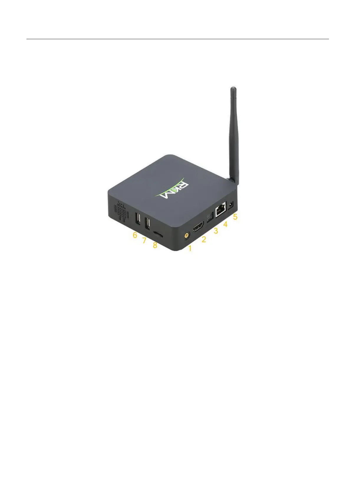 4. RJ45 Ethernet connector 5. DC in 6. USB Host