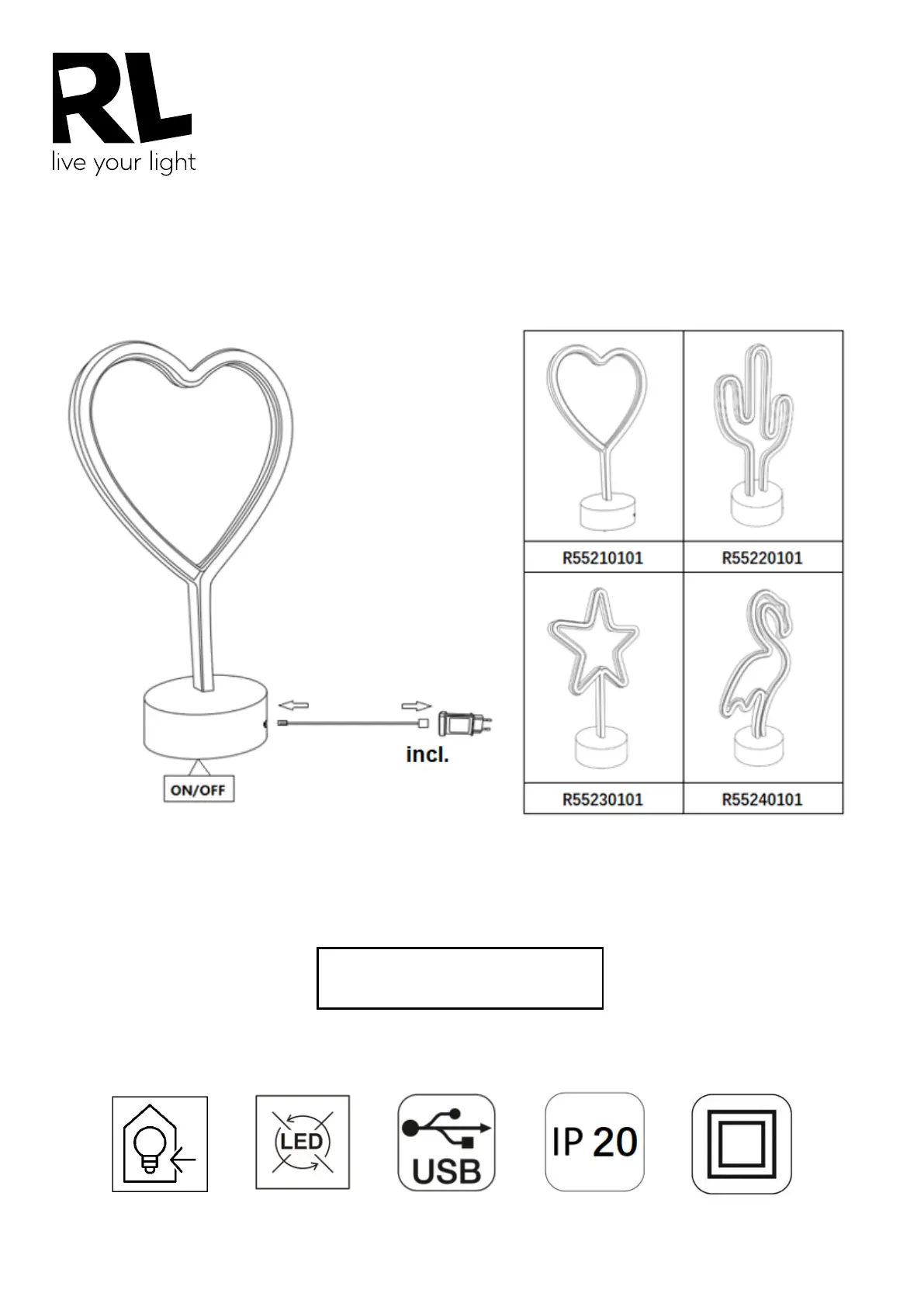 230V ~ 50Hz, 1 x LED 1.8W