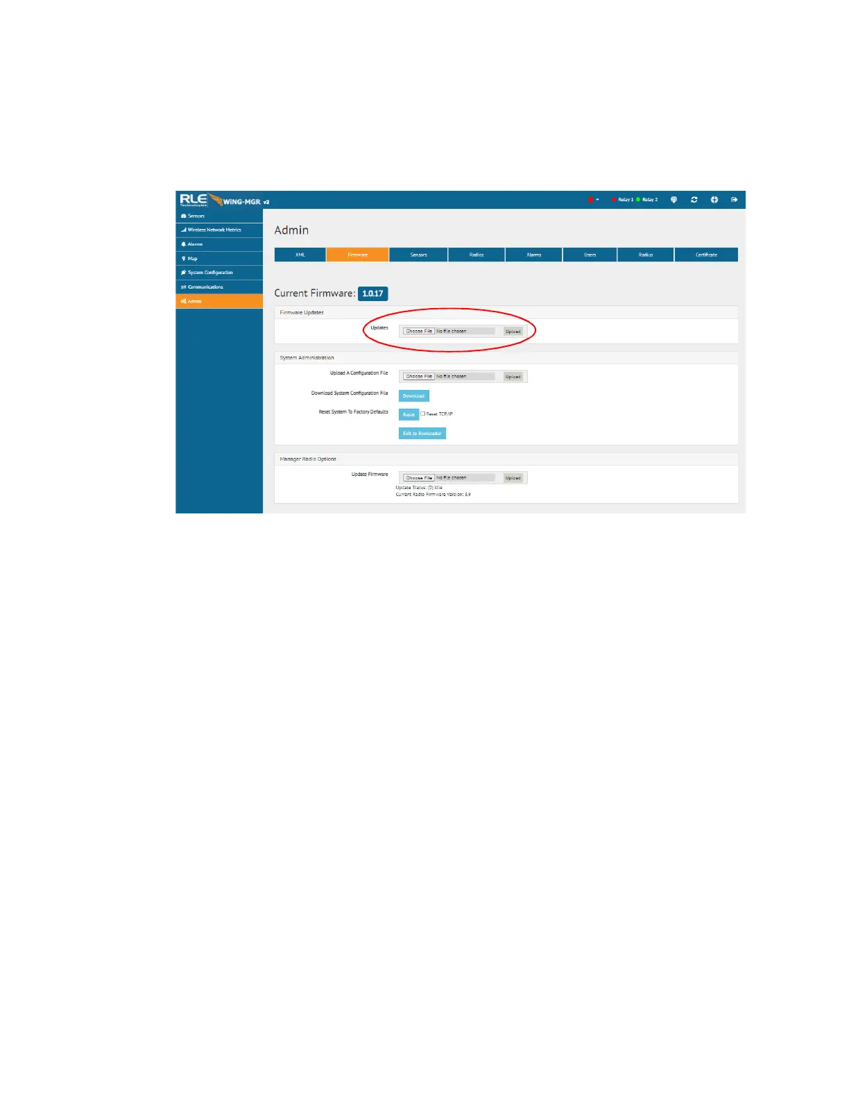 downloaded to a local drive, navigate to the Firmware tab within the Admin menu in the web