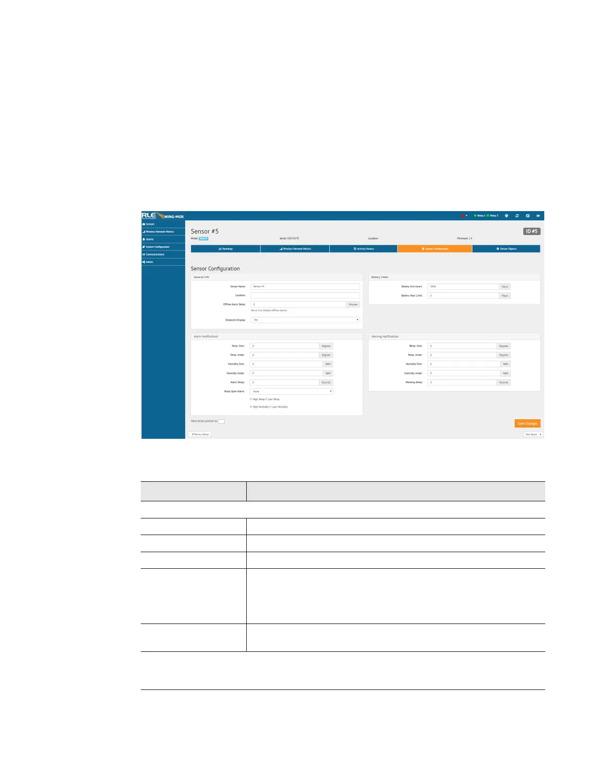 Use this page to configure your sensor. All fields in the following table will not be available