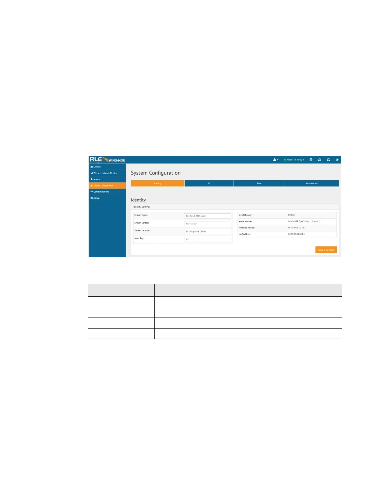 The Identity page allows you to customize the name of the WiNG-MGR and the contact and