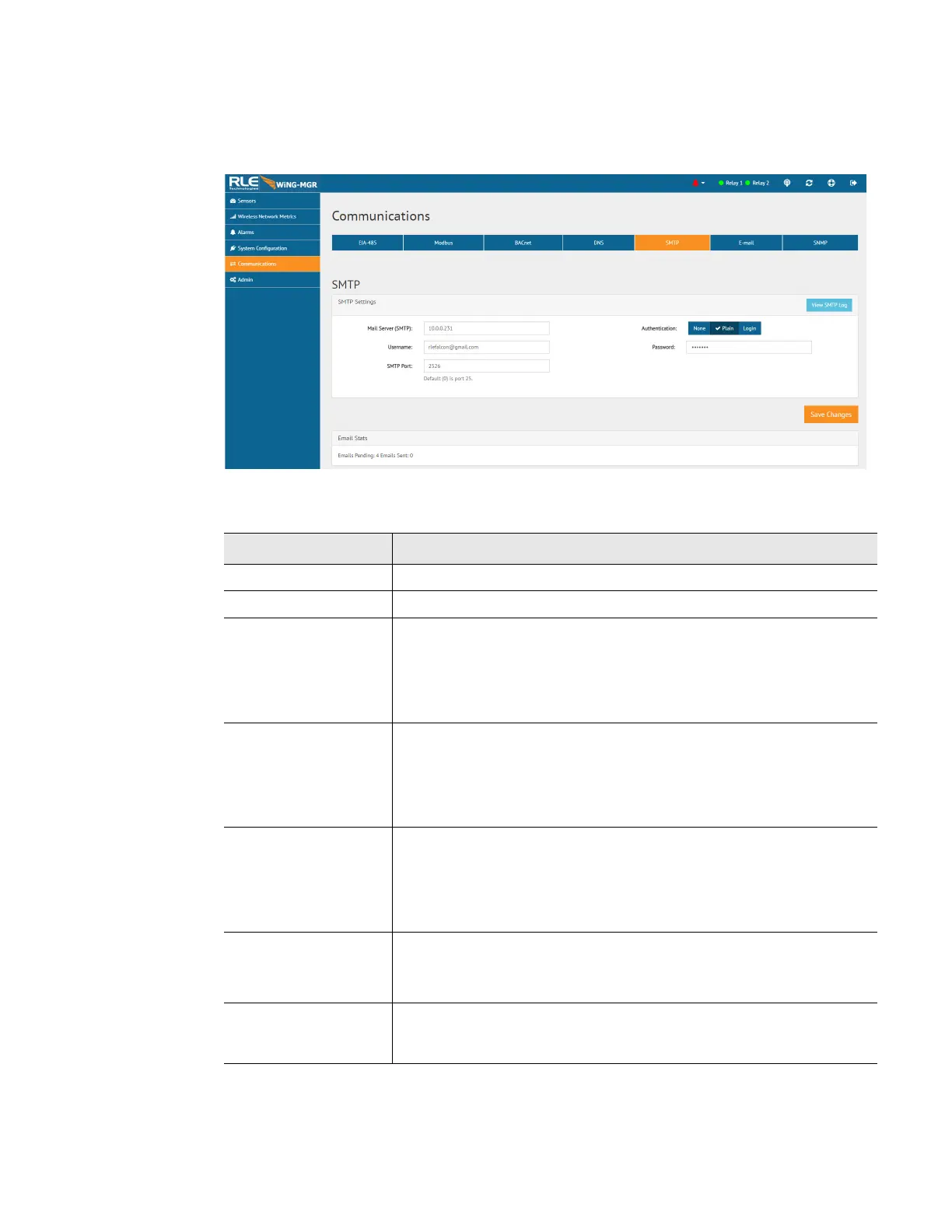 Configure SMTP settings through this page.