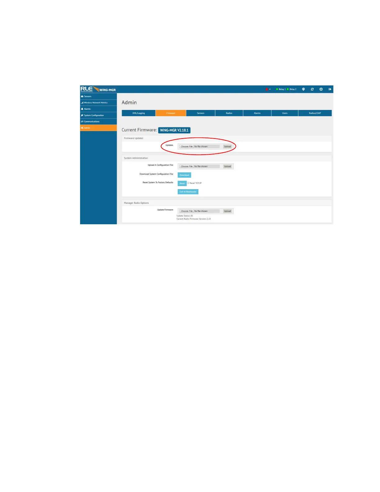 Admin Menu, Firmware Page - Firmware File Upload