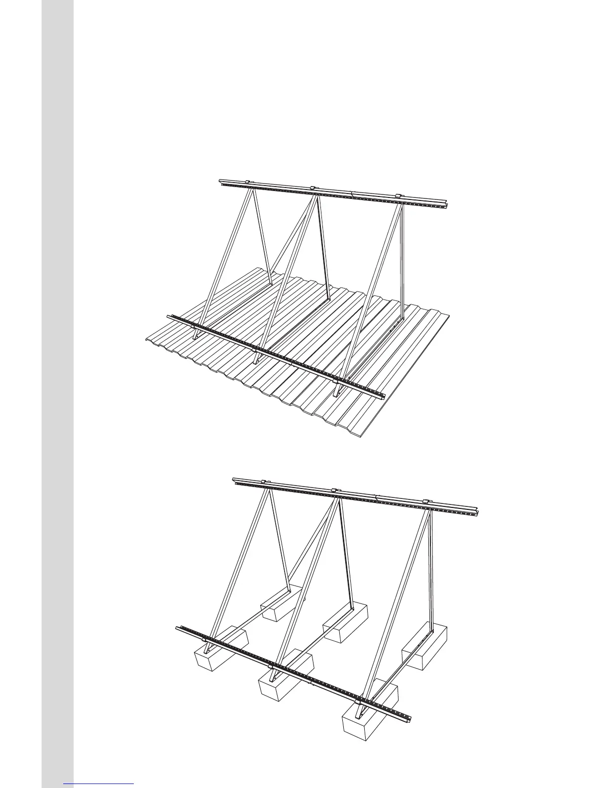 1. Screw the A frame to an aluminium trapeze plate and cover it with gravel.
