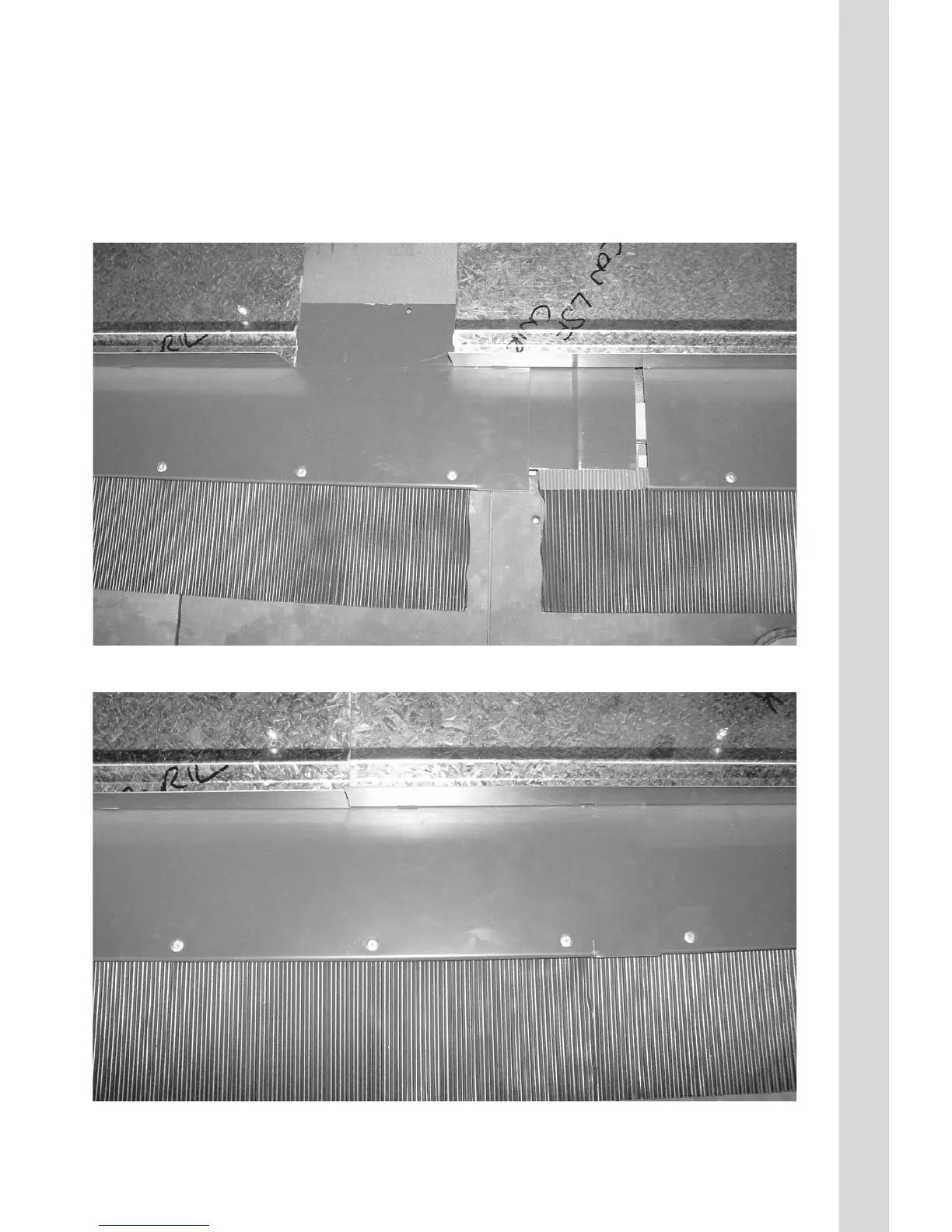Connect the right hand apron ashing to the left hand apron ashing as illustrated (below) ensuring