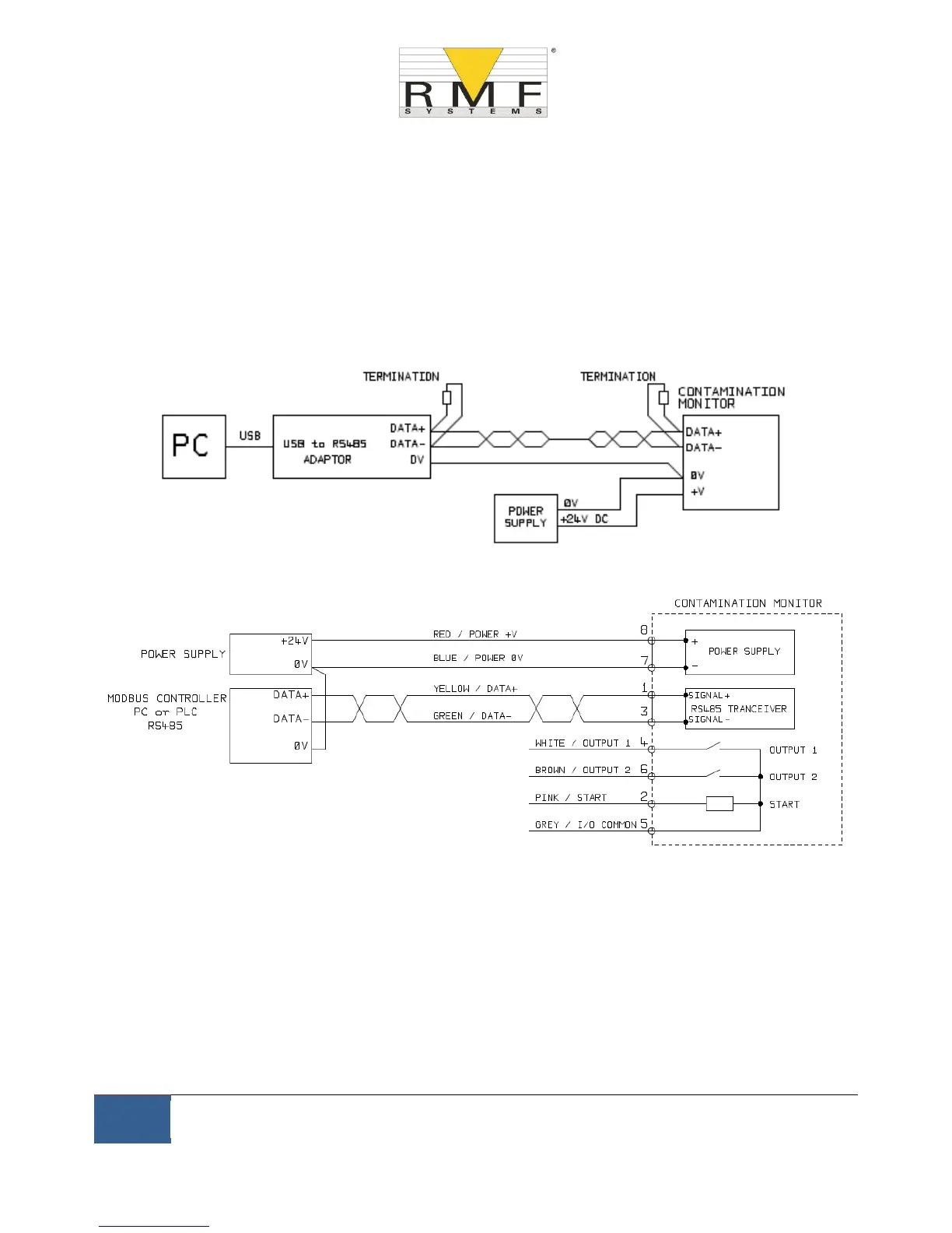 running customer software, or a PC with a RS485 adaptor running the supplied RMF-View software. To provide a