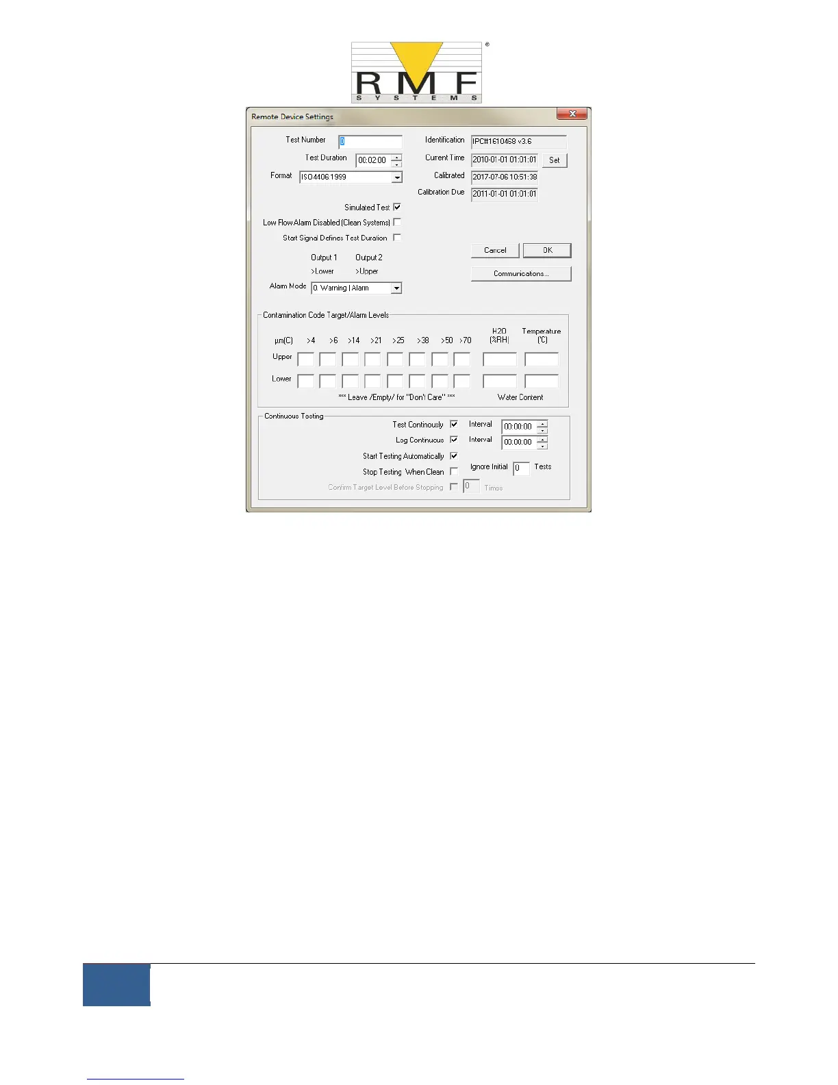 Current Time shows the time set on the CMS. It is important that this is correct since this is used to timestamp the