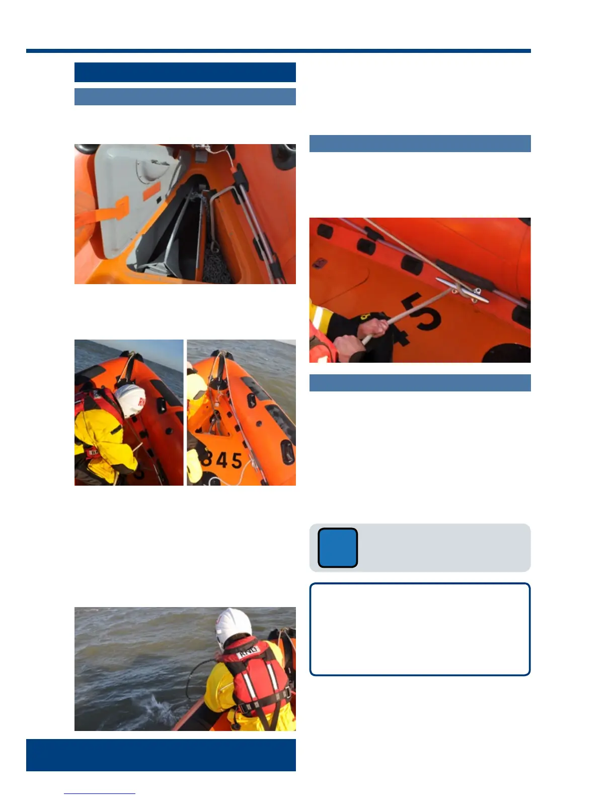 • Take up a position on the deck aft of the anchor locker lid