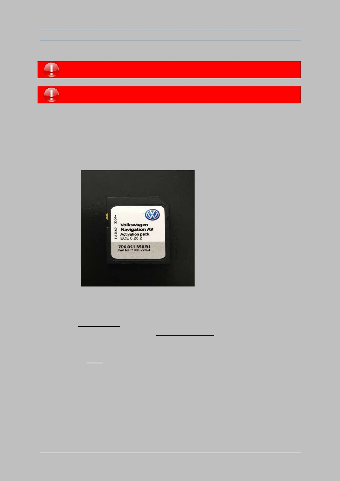 Prepare the SD card "7P6 051 850 JB " Activation Pack , (Looks like this picture below) :