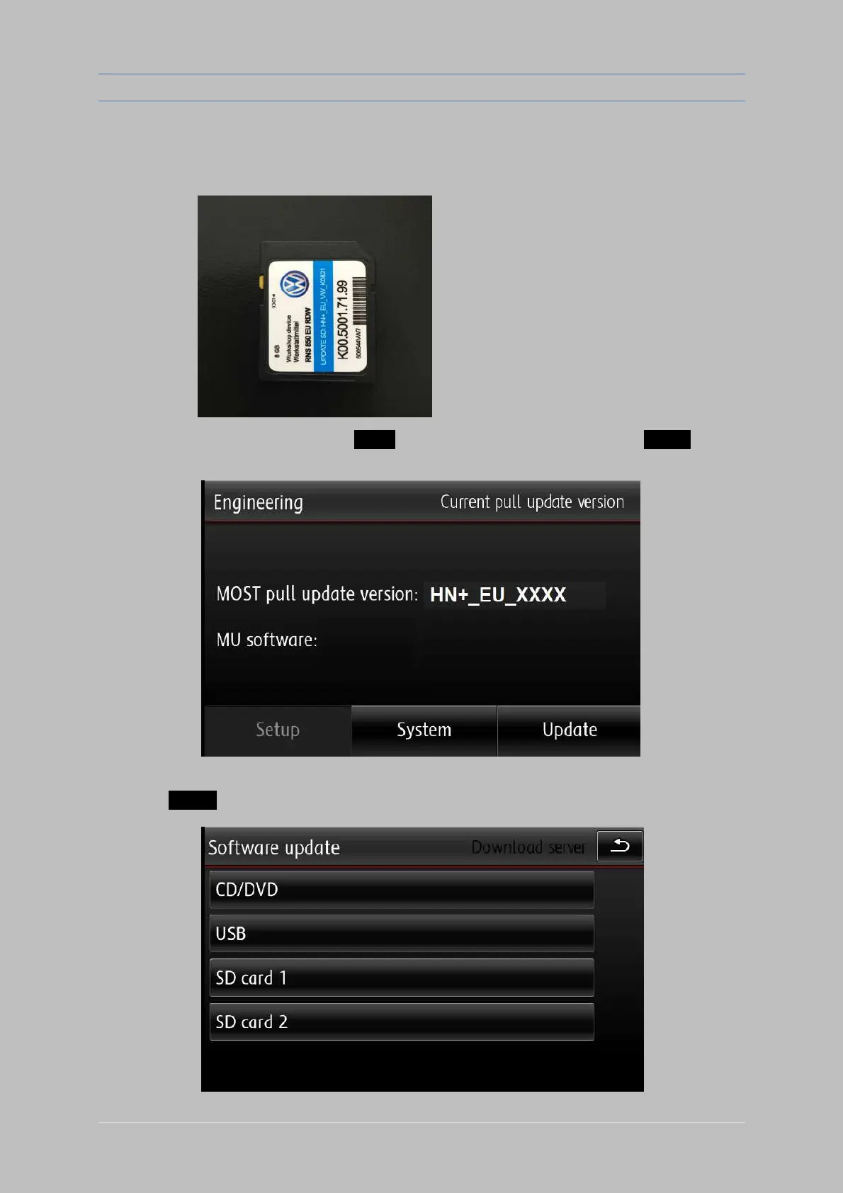 Press the “Update” option using the touch screen. Select the source in the menu (SD 1).