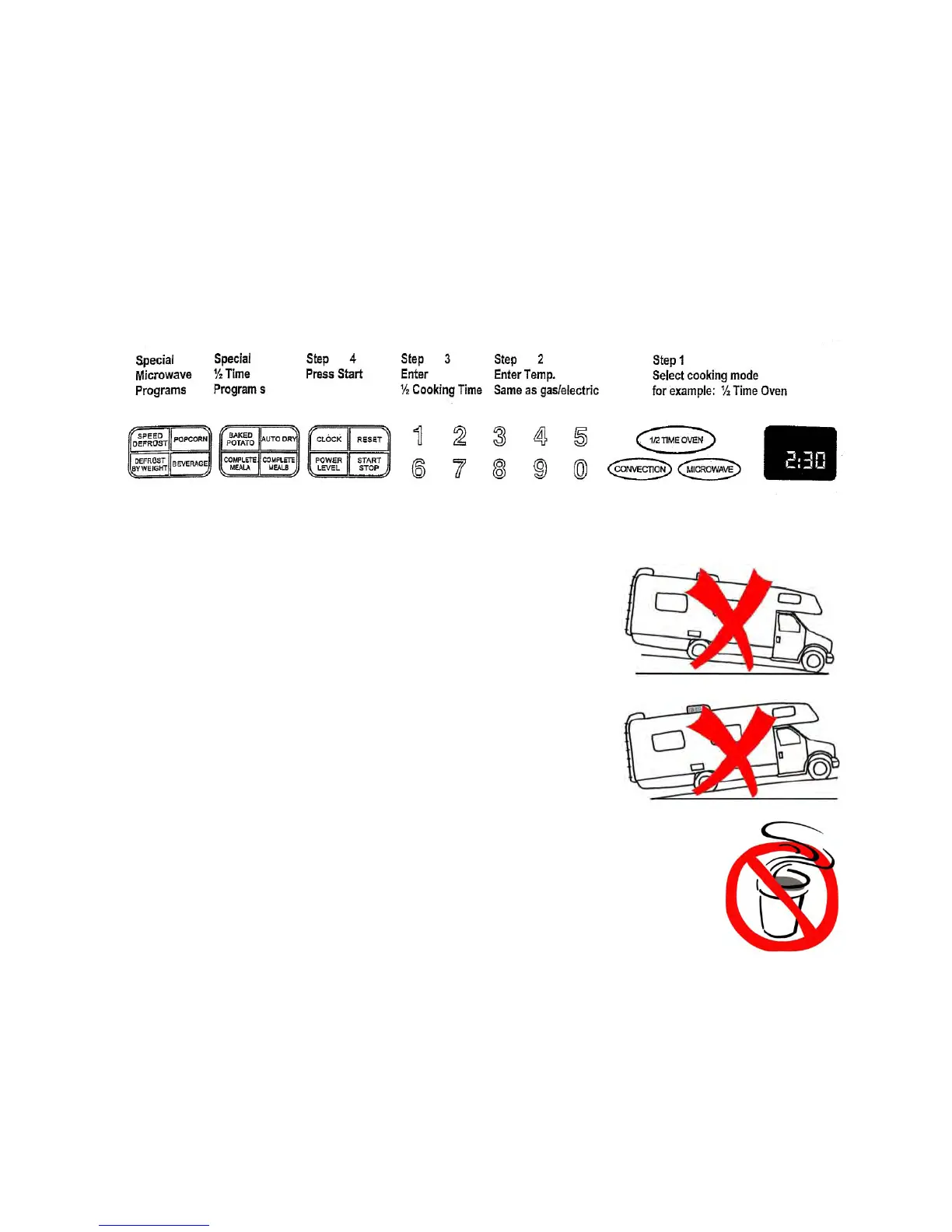Neverusethehalf‐time/convection/microwaveovenwhilethevehicleisinmotion!