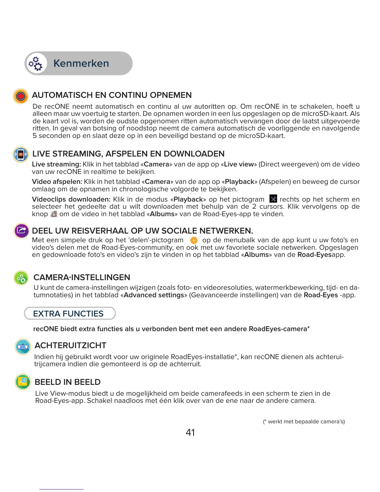 recONE biedt extra functies als u verbonden bent met een andere RoadEyes-camera*