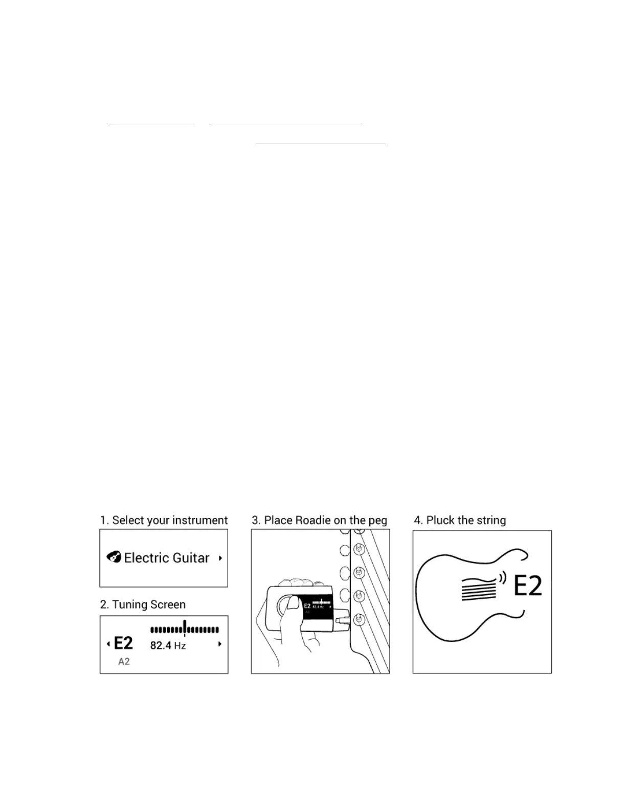 ● Place Roadie’s peg connector on the tuning peg of the note displayed on the screen