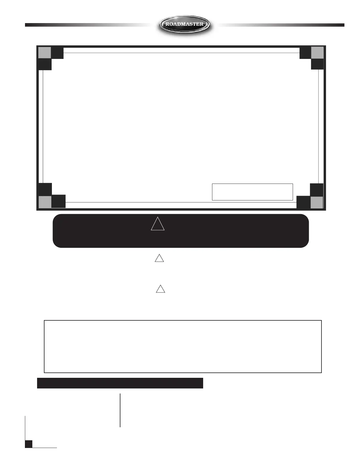 If you have any problems with this product, immediately contact ROADMASTER at 1-800-669-9690. If necessary,