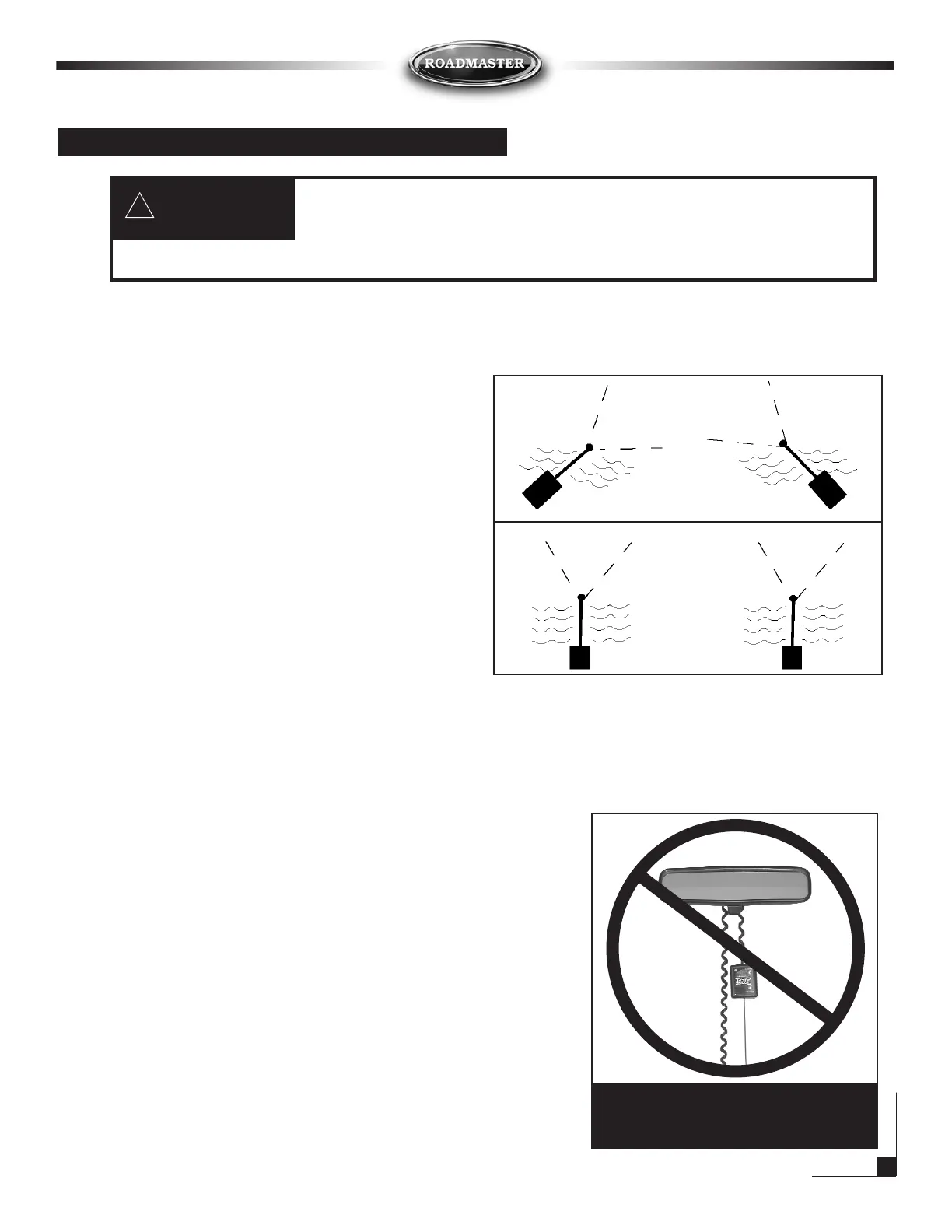 IMPORTANT! Do not route transmitter and/or receiver wires parallel to antenna as shown below or a false