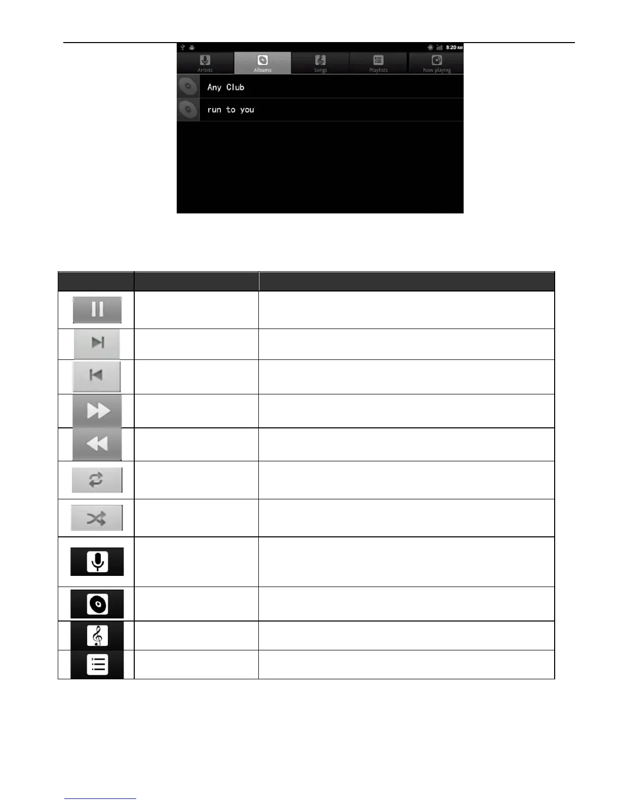 Icon Button Name Function Description