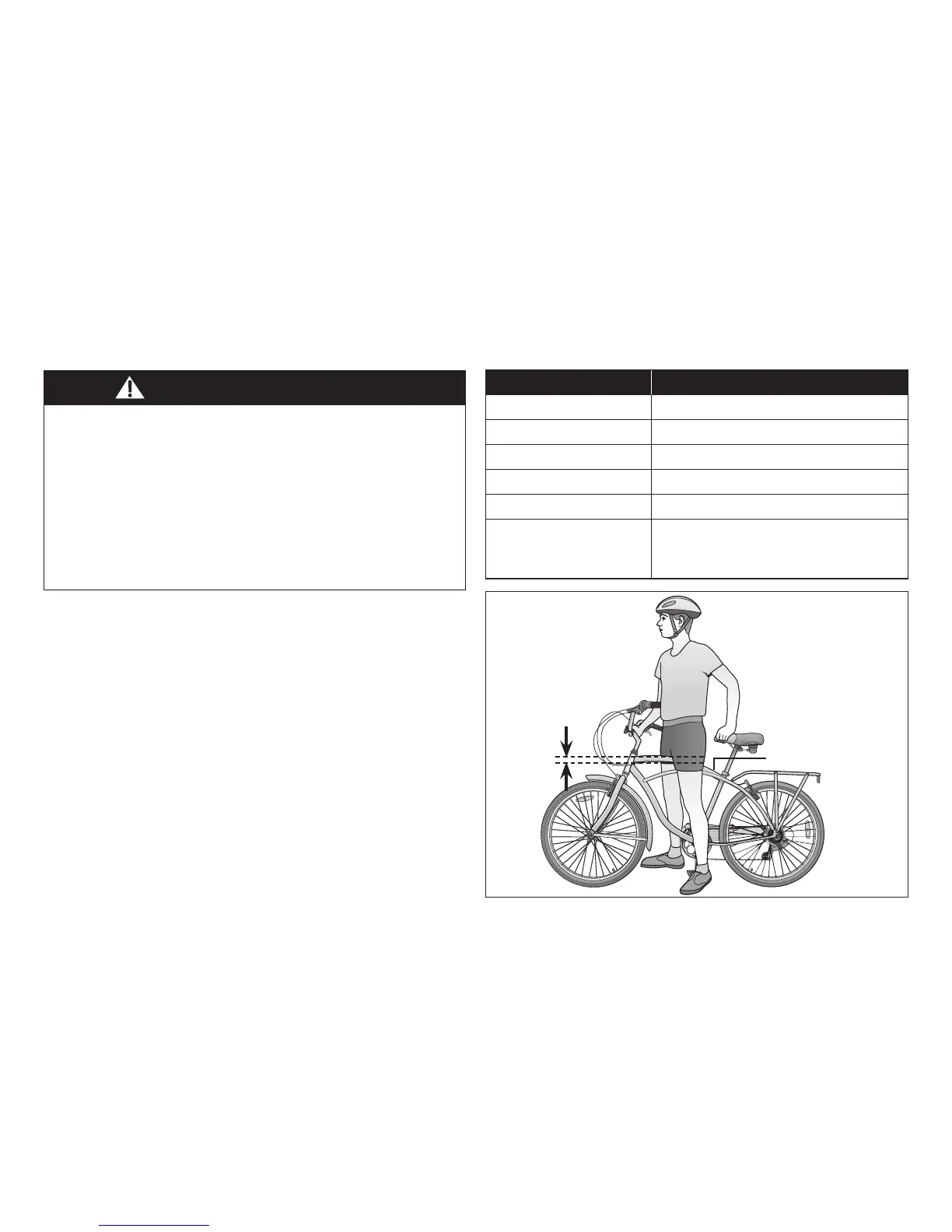 mida de 28 a 38 pulgadas de altura. Nota: Algunas bicicletas