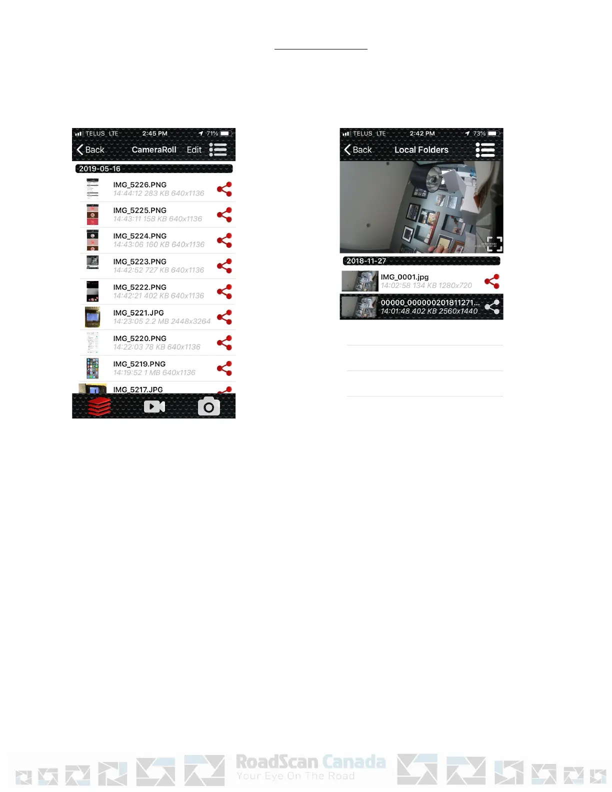 RoadScan Canada PBC10 - File List Management in App; Accessing Video and Photo Files
