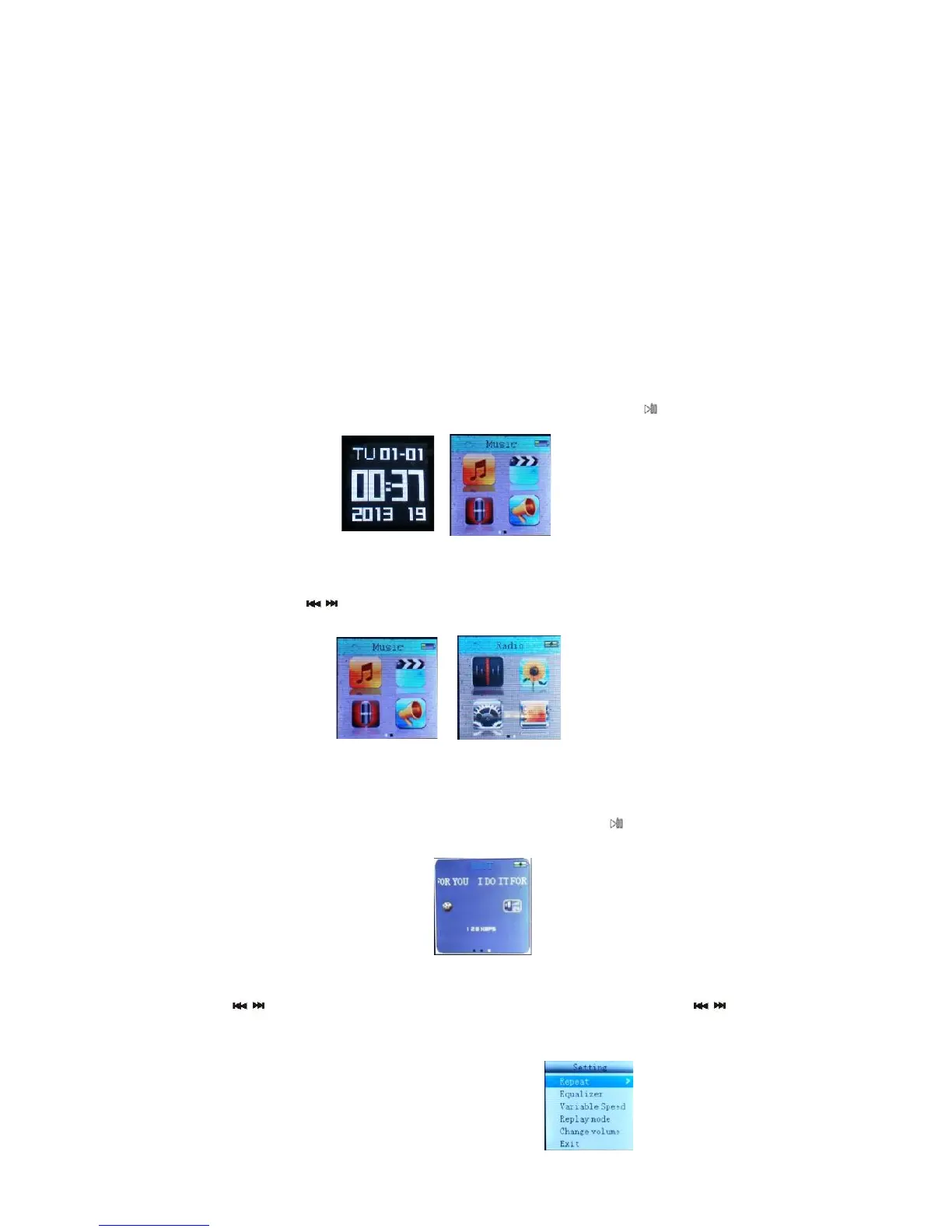 The interface for music play as follows (if there are lyrics for playing music, long press M button to see the