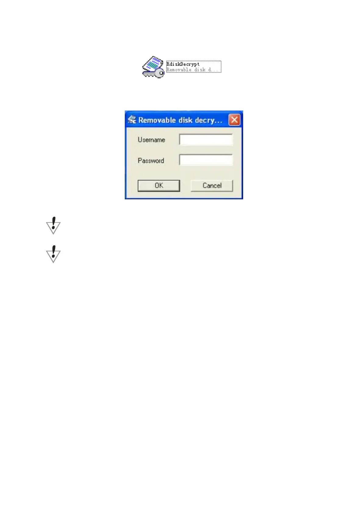 5.Running executable file ‘RdiskDecrypt.exe’ and input username and password. If all are correct, disk will be