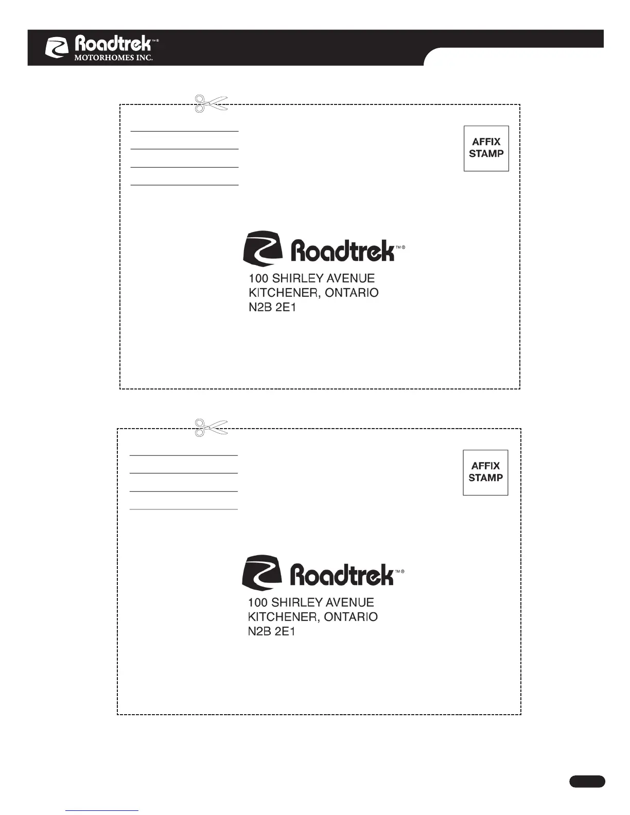 Please contact Roadtrek Motorhomes should you require additional customer referral cards.