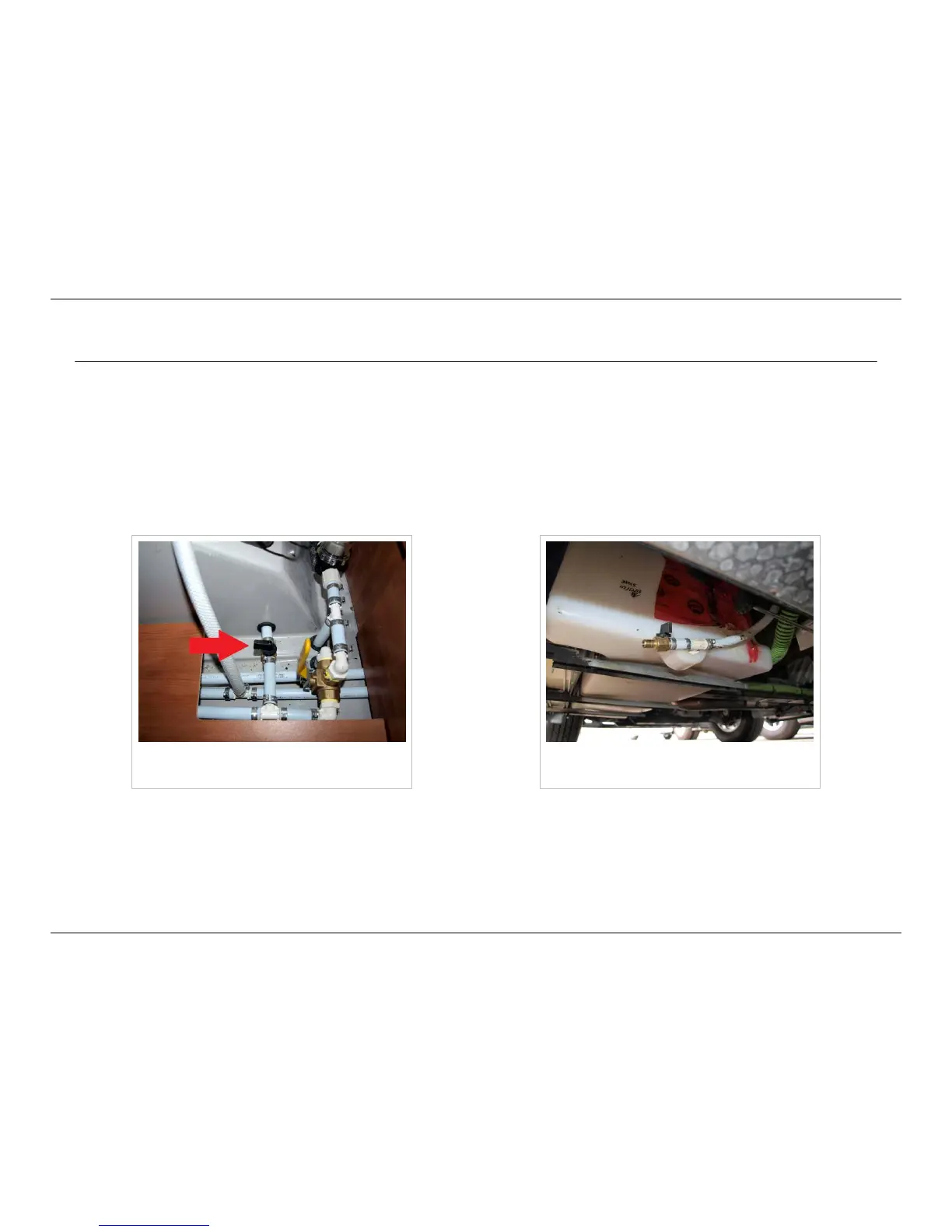 1.1. Close the connecting valve between interior and exterior tanks. This valve is located under the drivers side bench seat