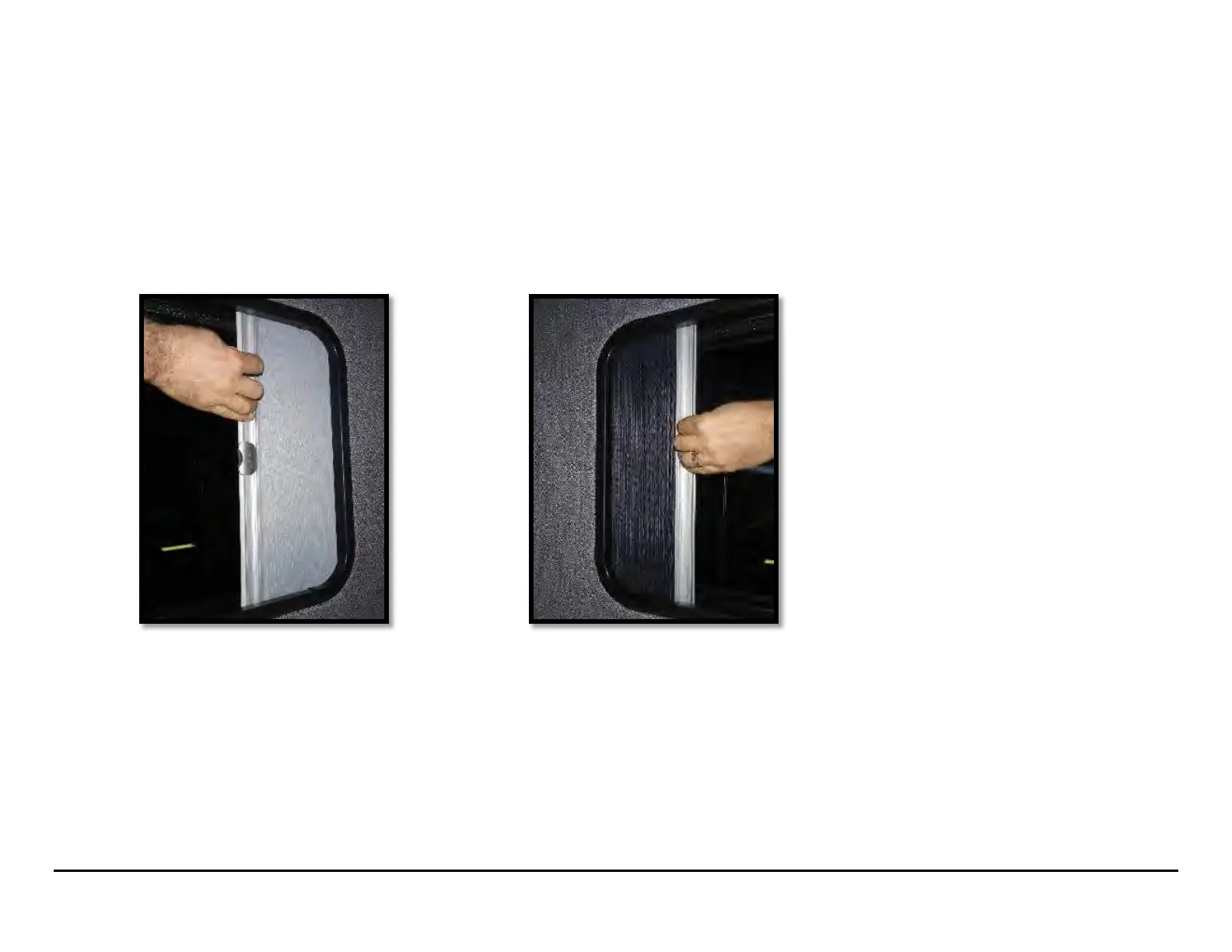then close the side door, it is possible for the curtain to get blown out of the track. Always close the window prior to closing the nightshade.