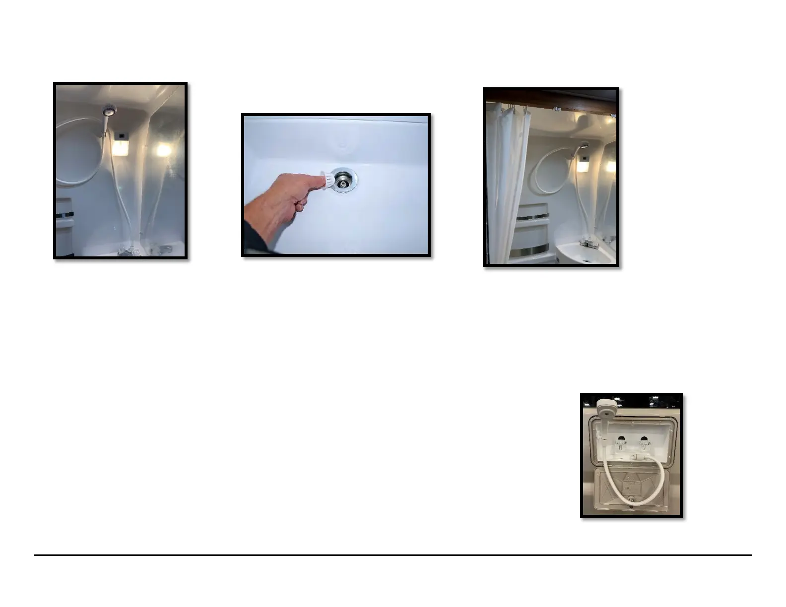 air dry the curtain before storing it. Refasten the drain stopper to prevent the contents of the gray water tanks from sloshing up into the shower area