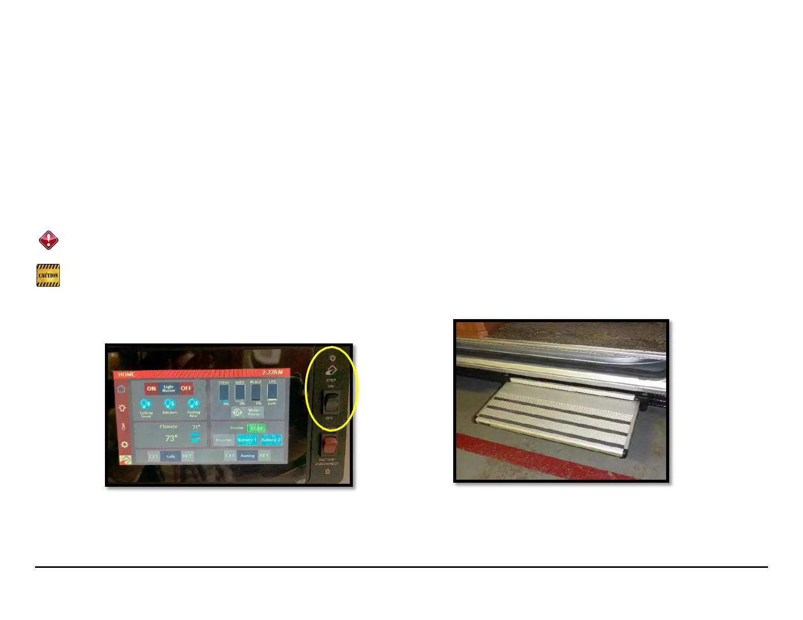 Your Roadtrek is equipped with a step that automatically extends when the side door is opened for easy entry and exit out of your vehicle. The