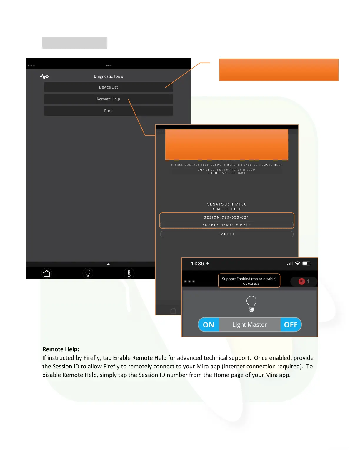 If instructed by Firefly, tap Enable Remote Help for advanced technical support. Once enabled, provide
