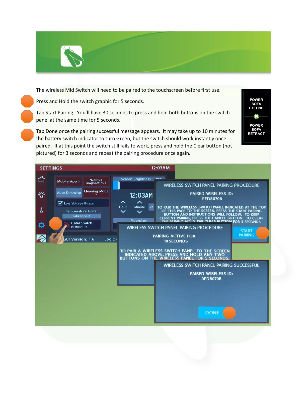 The wireless Mid Switch will need to be paired to the touchscreen before first use.