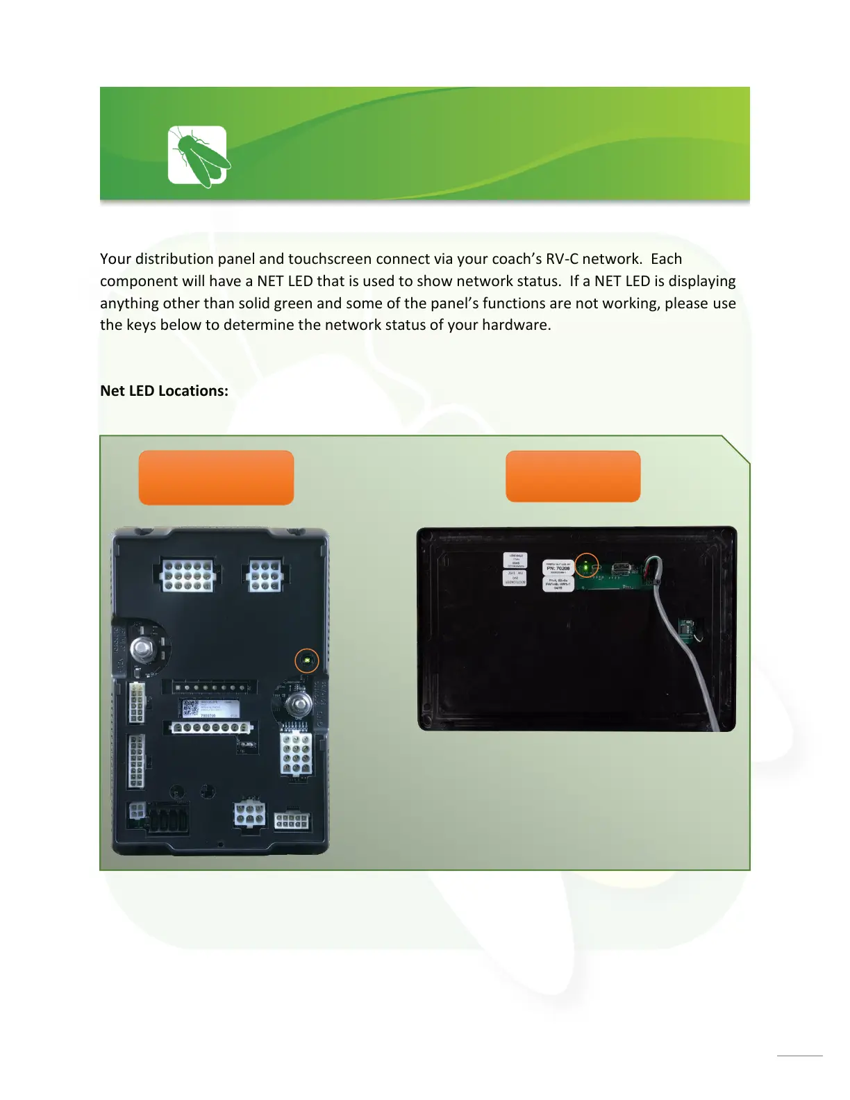 component will have a NET LED that is used to show network status. If a NET LED is displaying