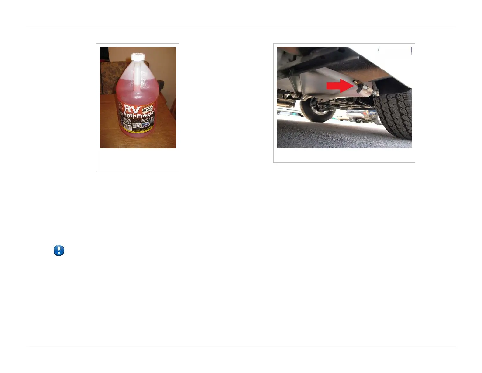 •• 4. Drain the fresh water tank by opening the fresh water tank drain valve, located under the passenger front door step. Let