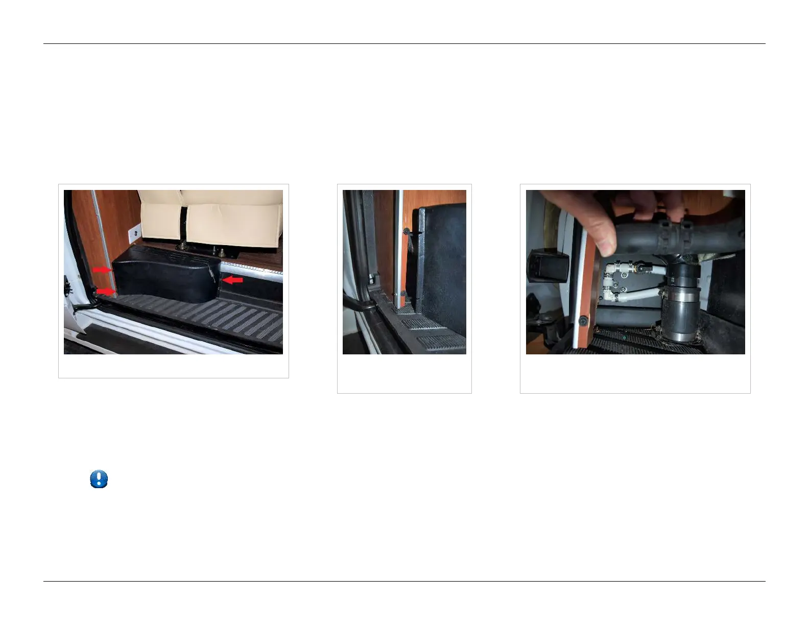 •• To open the valve, loosen the Robertson head screws holding the plastic radiator cover on the side door step. Remove the