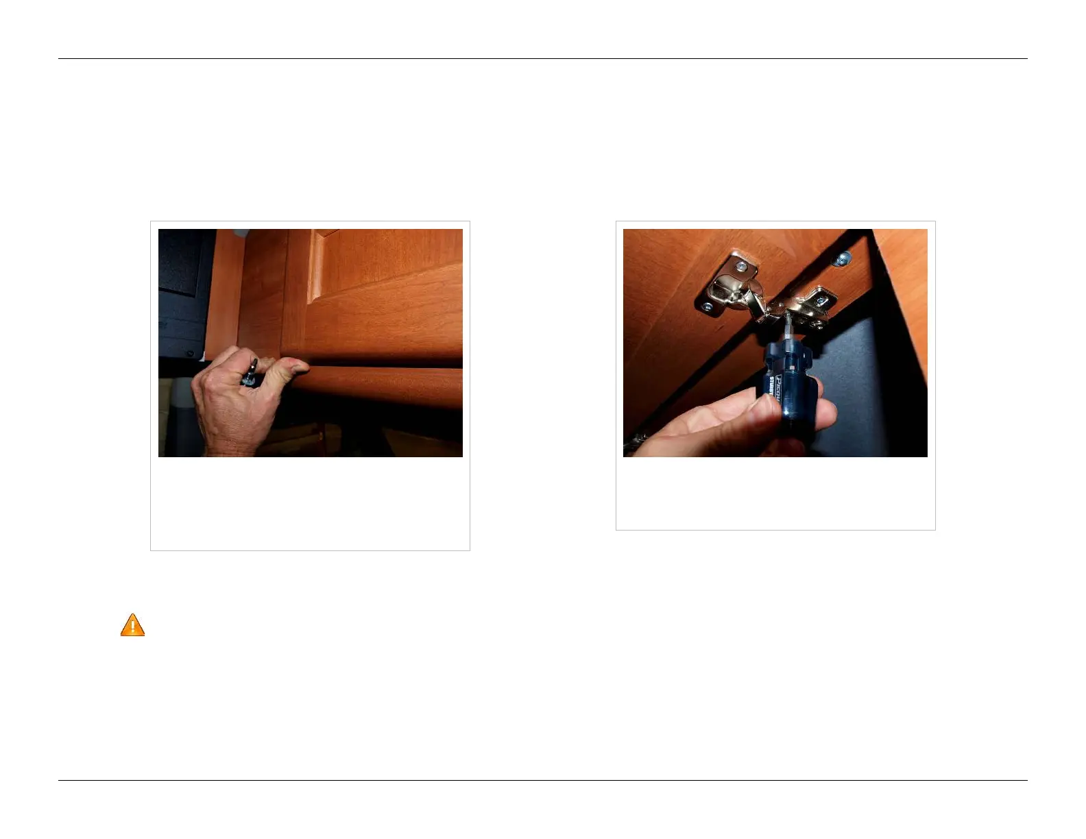 cabinet door while simultaneously applying gentle pressure to open it, as shown above left.