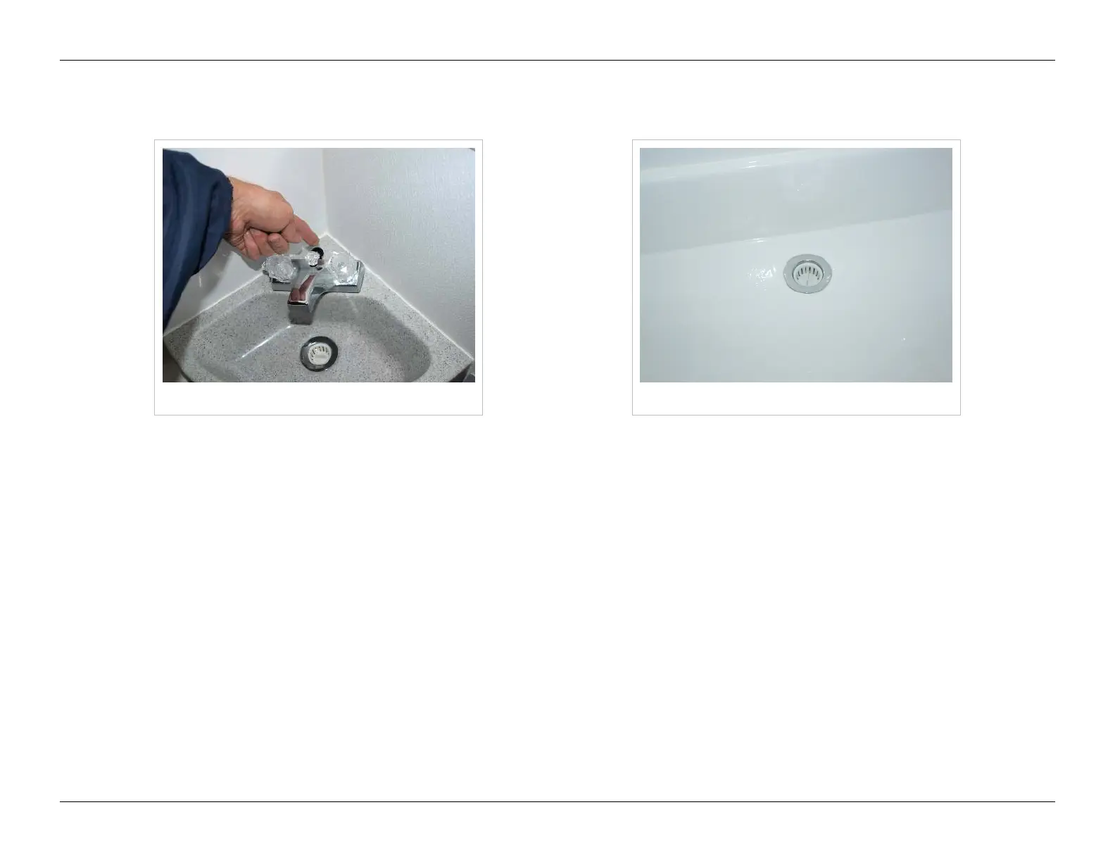 •• Adjust the water temperature as needed using the cold and hot water knobs on the sink faucet