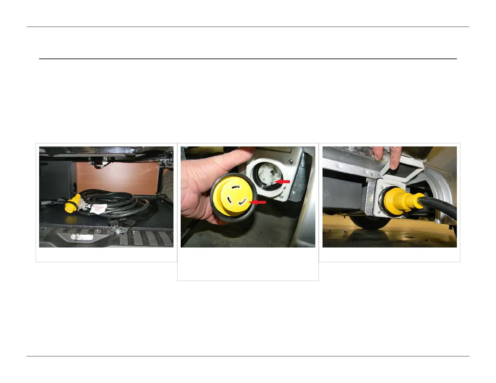 Your CS Adventurous has a shore power cord, which is stored beneath the sofa. Plug the large yellow end of this cord into