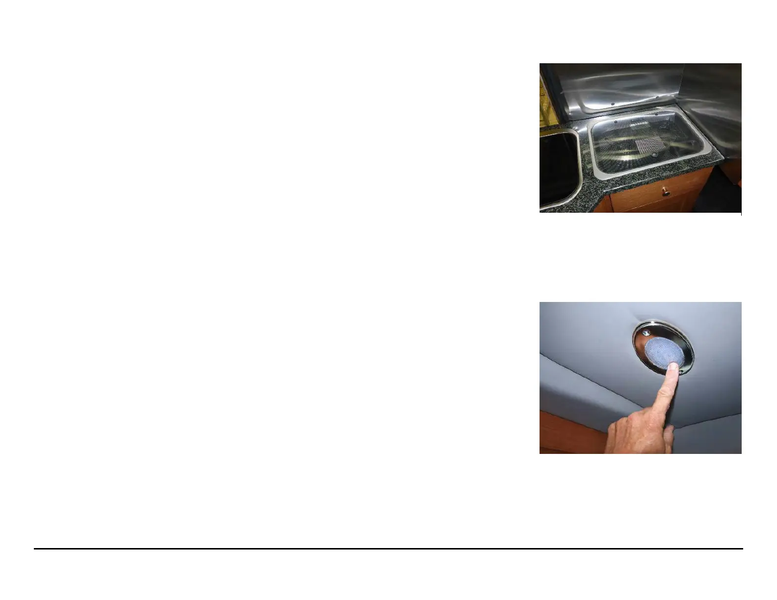 The oval ceiling lights are individually controlled and are turned on by tapping the lens area of a given